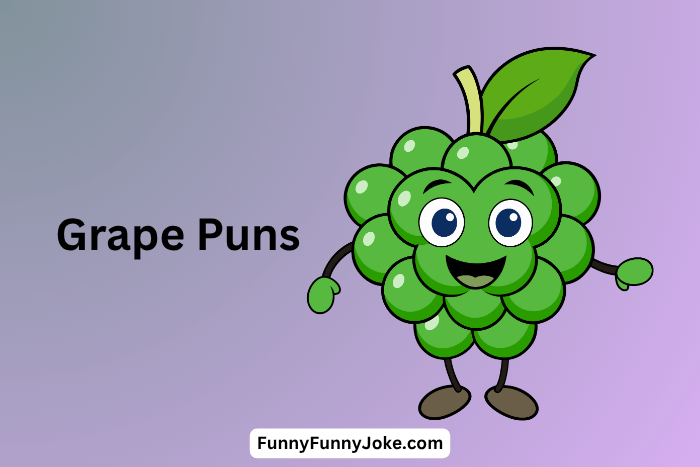 Get ready to have a grape time because this collection of grape puns is bursting with juicy humor! Whether you’re a fruit fanatic, a wine lover, or just someone looking to squeeze a little fun into your day, these puns are ripe for the picking. Grapes might be small, but they pack a punch when it comes to clever wordplay and vine-inspired giggles. From grape expectations to raisin the bar in comedy, these witty lines will make you smile faster than you can pop one into your mouth. Perfect for captions, conversations, or just a bunch of laughs with friends, these grape puns will leave you feeling un-wine-d and cheerful. So pour yourself a glass, sit back, and let these pun-filled treats roll off the vine straight to your funny bone — because when it comes to laughter, things are about to get truly grape-tastic!